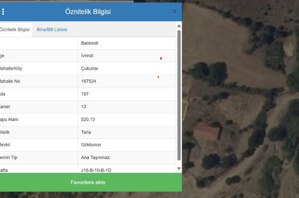 Balıkesir İvrindi Çukurlar Köyünde Güzel Bir Konumda Tarla